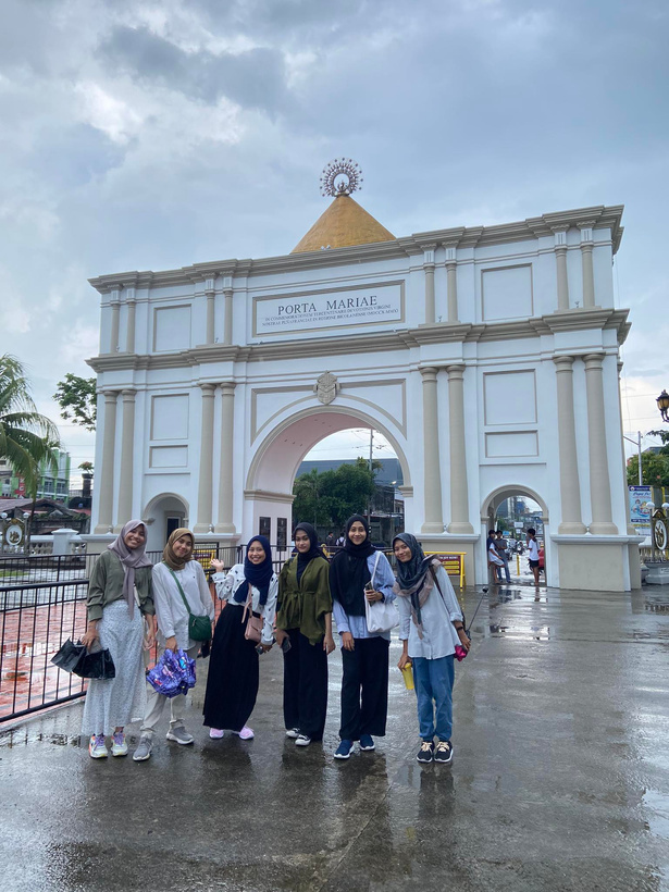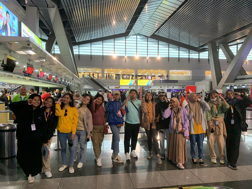 We arrived at the biscast at around 2am. There I was greeted by a banner with a photo of the six of us on it. At the gate and before we entered the hostel. Not only that, but our faces were also on the TV screen. after a long journey we headed to our room, cleaned up and rested.