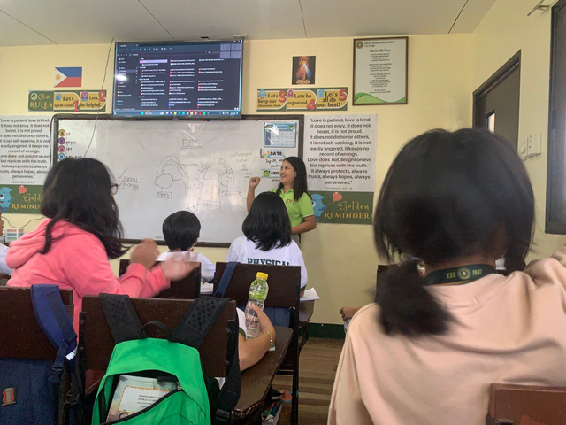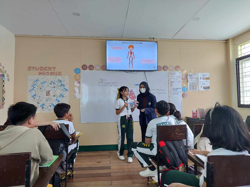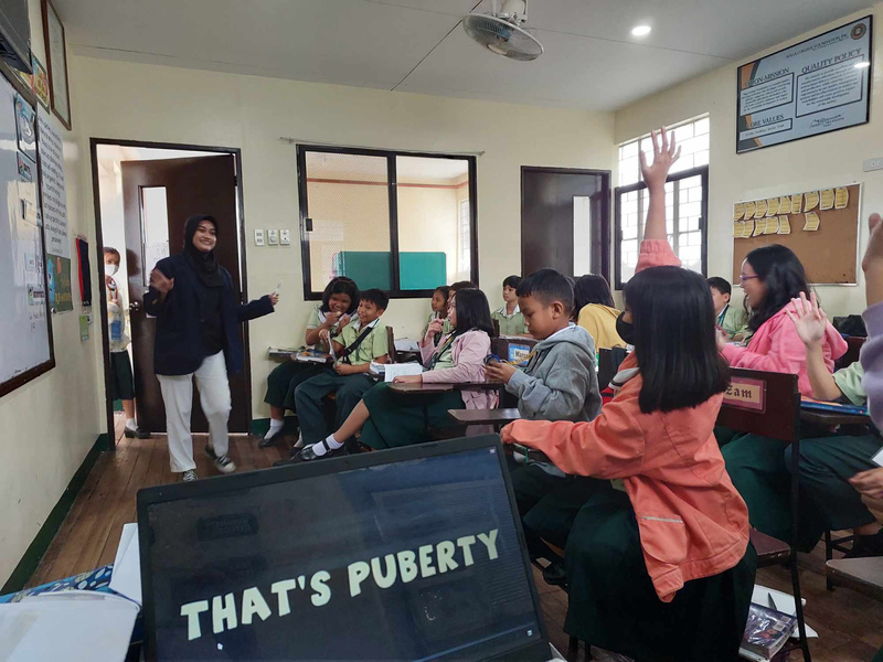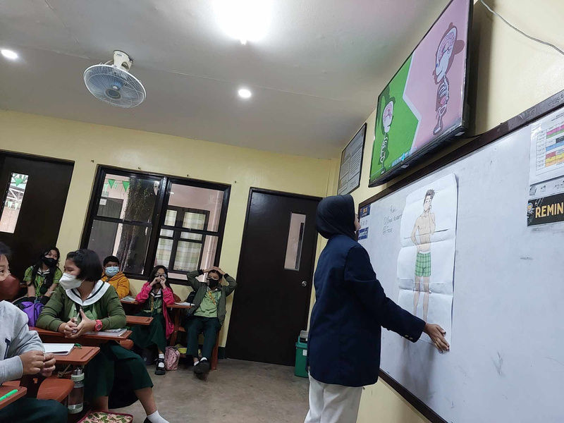 Procedures of teaching: Before teaching, I have to make a lesson plan and prepare the media and materials that will be given to students. I use power point and make media such as teaching posters, comics, pictures, and other materials. I teach at the intermediate level, grades 5 and 6.